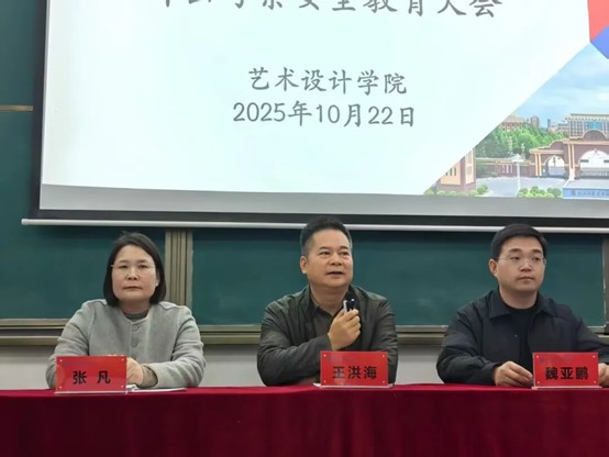 (图/李艾芯 文/段中丽)为确保外出考察活动安全、有序、高效开展,艺术设计学院于2025年10月22日在文华楼阶三召开2025-2026学年第一学期外出考察安全教育大会。艺术设计学院院长王洪海教授、艺术设计学院党委书记(学生管理副院长)魏亚鹏同志、艺术设计学院教学科研副院长张凡副教授、艺术设计学院副院长张强老师、艺术设计学院分团委书记段中丽老师、艺术设计学院办公室主任魏洪丞老师、艺术设计学院教科研秘书刘利娟老师以及学生代表参加会议。本次大会由张凡副院长主持。