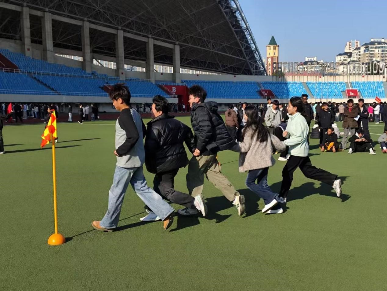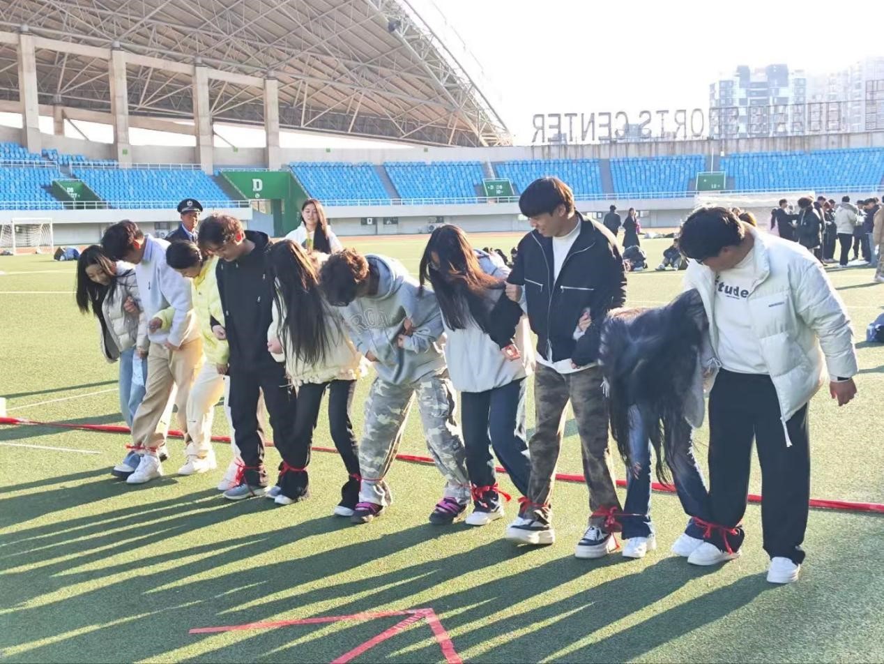 在充满策略与配合的“贪吃蛇”项目中,学子们默契配合,指令清晰,行动统一,在相处中构建起坚实的信任纽带。“十人九足”比赛则是对协调与节奏的极致考验,艺术设计学院的学子们肩并肩、腿绑腿,口中喊着整齐划一的口号,步伐一致地向着终点冲刺,每一次迈步都是对团队凝聚力的生动诠释。