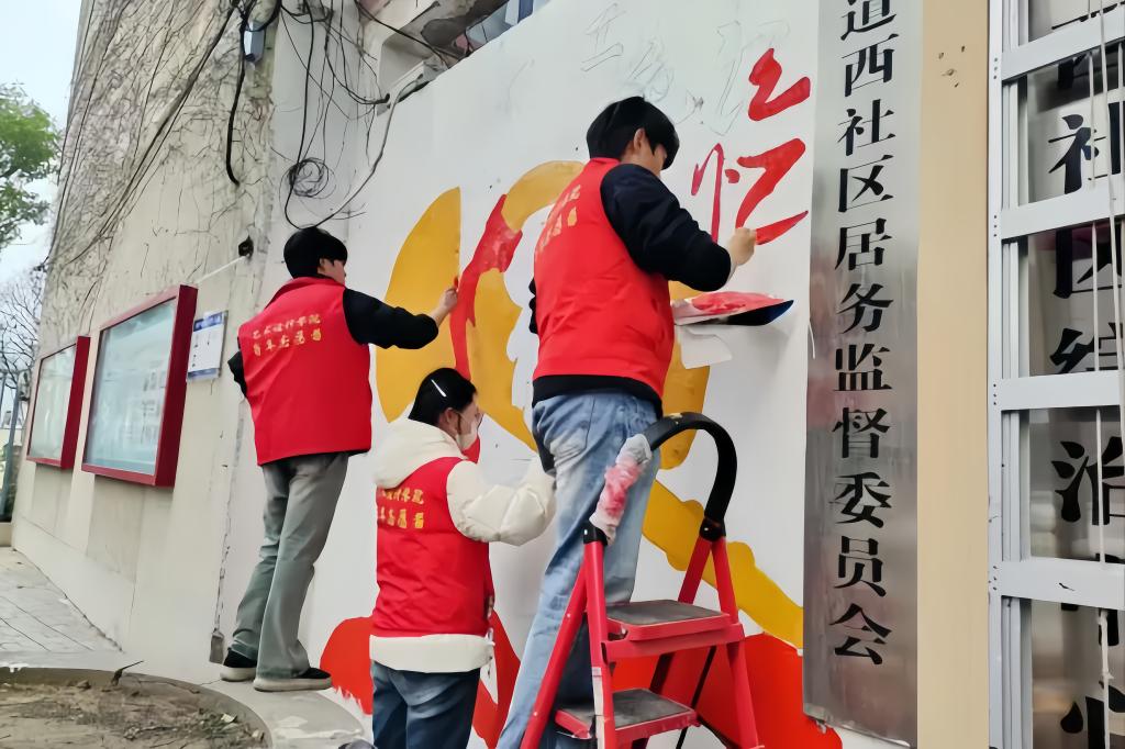 2026年3月,艺术设计学院启动“学雷锋”社会实践活动,创新开展“艺心向党”系列主题墙绘实践,以专业所长赋能社区发展。活动中,志愿者们以墙为卷、以笔为媒,分工协作投身墙绘创作,现场或勾勒轮廓、或填充色彩、或细致修饰,专注的身影吸引村民驻足观看。此次墙绘实践将专业特长与红色传承深度融合,既为社区老旧墙面焕新颜,让红色文化浸润人心,又为社区风貌注入新活力。志愿者们表示,此次实践让课堂知识落地,在创作中锤炼专业技能的同时,深刻践行了雷锋精神,进一步增强了青年担当,成为高校党建与社会实践深度融合的生动范例。