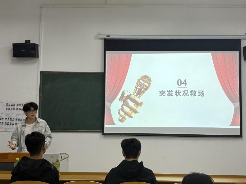本次初赛设置四大核心环节,全方位考察选手综合素养。自我介绍环节,选手们各展风采,迅速建立第一印象;指定稿件朗读中,大家字正腔圆、声情并茂,尽显扎实内功;场景主持环节,选手们灵活切换风格,从容把控现场氛围;即兴救场环节则是最大亮点,面对突发状况,学子们沉着冷静、巧妙化解,展现了极强的临场智慧与心理素质。