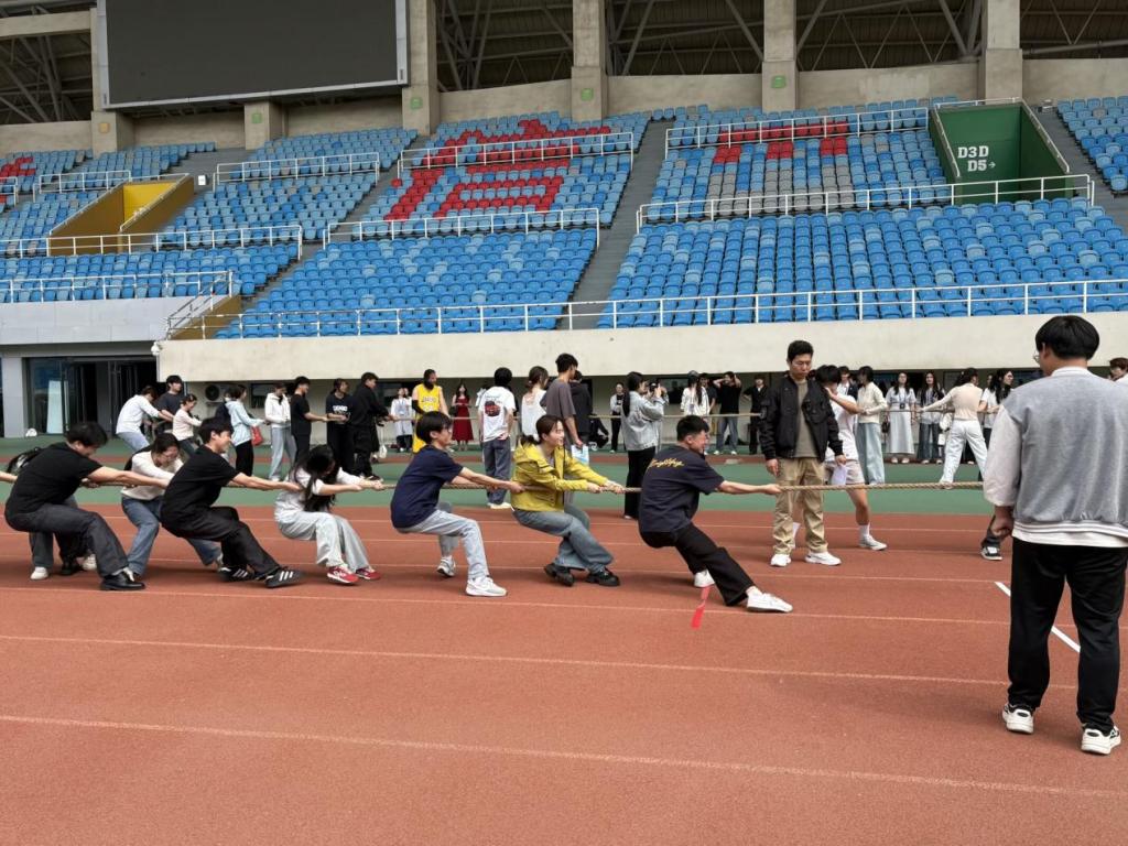 比赛筹备期间,学院周密安排队员选拔、集中训练与安全防护工作,全力保障参赛队伍以最佳状态出战。随着裁判一声令下,我院与其他学院的对决正式打响。参赛选手们齐心协力、紧握绳索,重心稳沉、合力后拉,用默契配合与坚定信念全力争胜;场外同学齐声呐喊、加油鼓劲,现场气氛热烈高涨。生动彰显了艺术设计学院学子凝心聚力、勇争一流的青春风采。