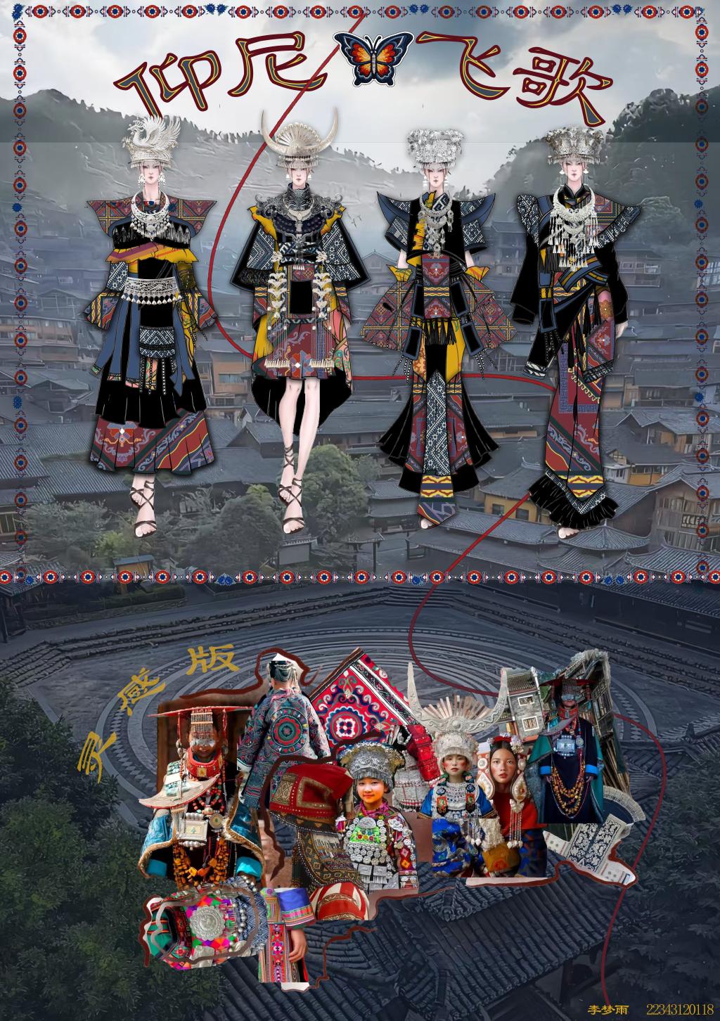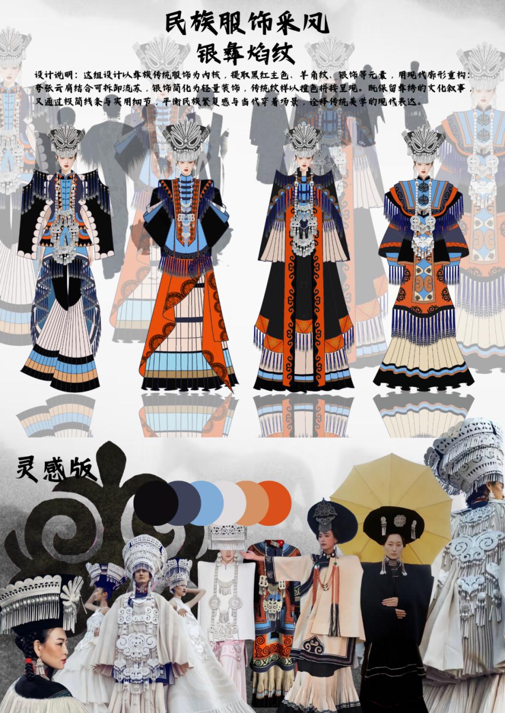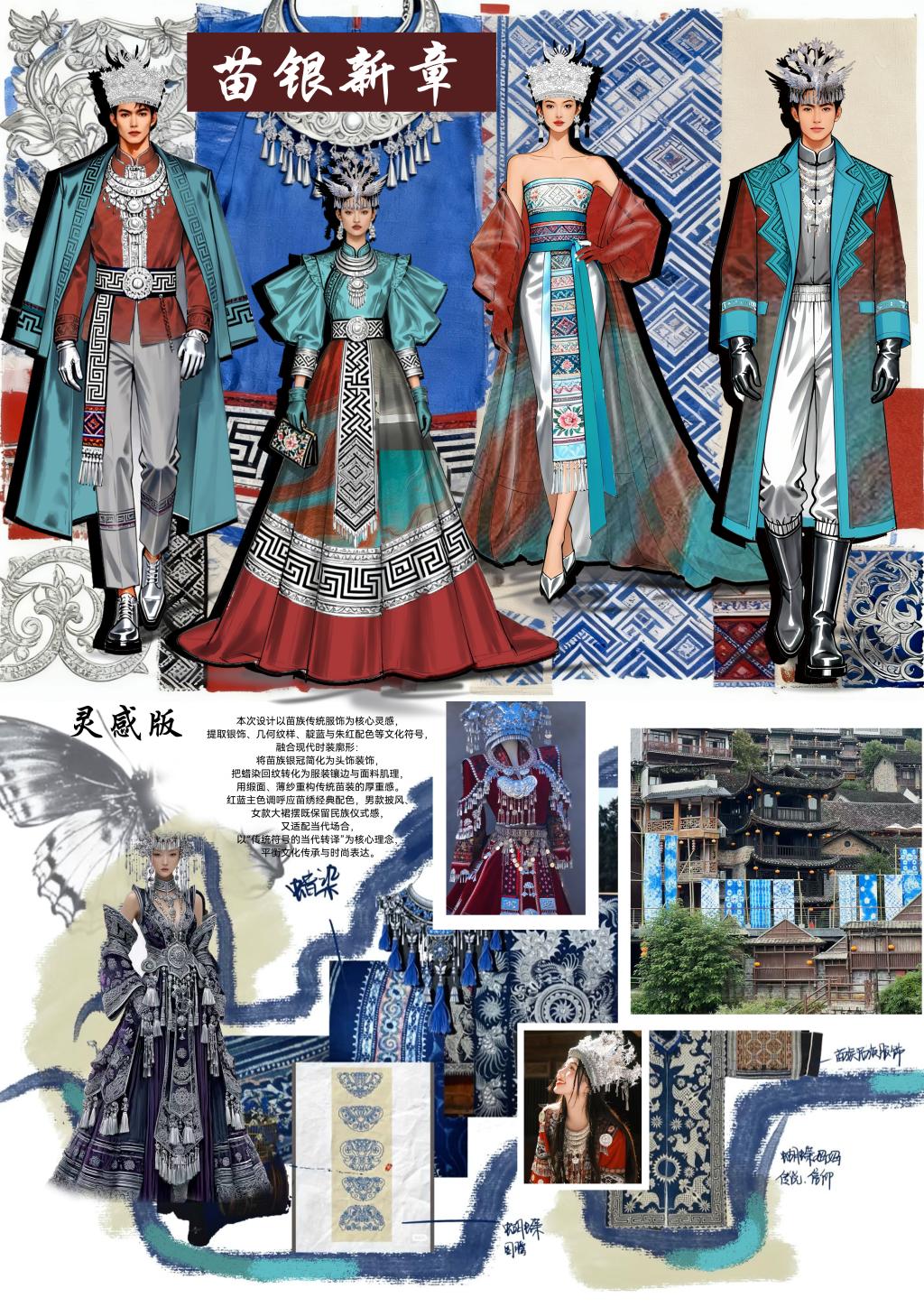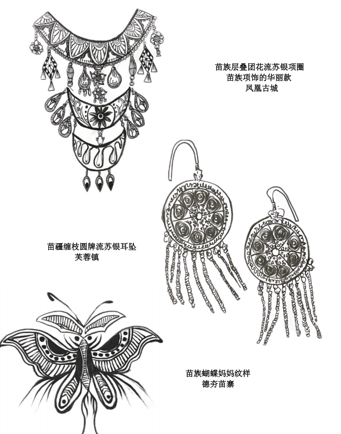 为期十天、跨越湖北与湖南两省的考察,使学生系统接触到地域民族服饰的发展脉络——从恩施的土家族服饰演变,到芙蓉镇对“西兰卡普”的现代记录;从苗寨中亲手练习苗绣针法,到凤凰古城中感受服饰所承载的民俗意义;再到长沙探索传统服饰与现代设计的融合。一路积累了丰富的纹样、工艺素材,更建立起“工艺—文化—设计”的思维,为民族风设计储备了鲜活灵感。
