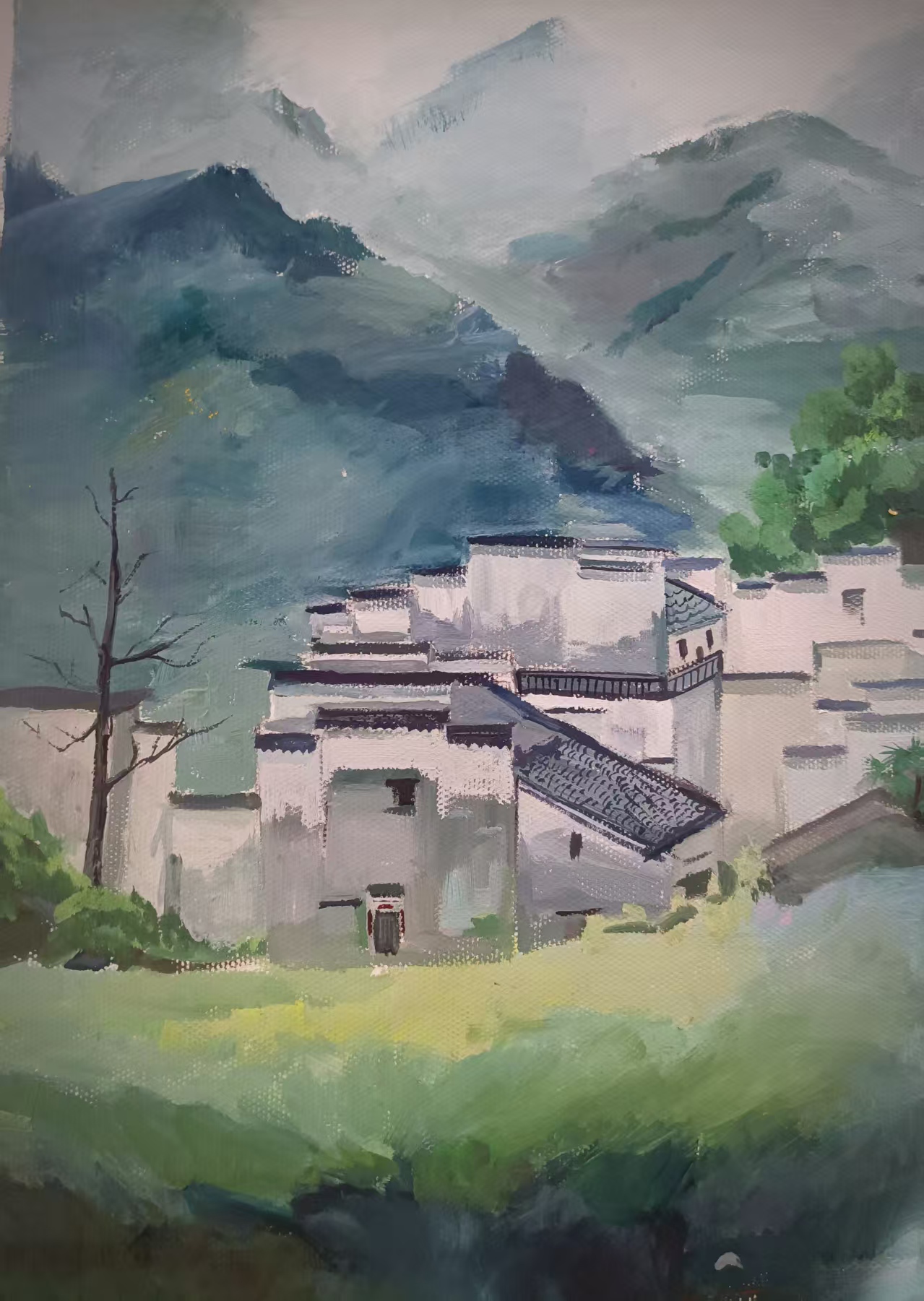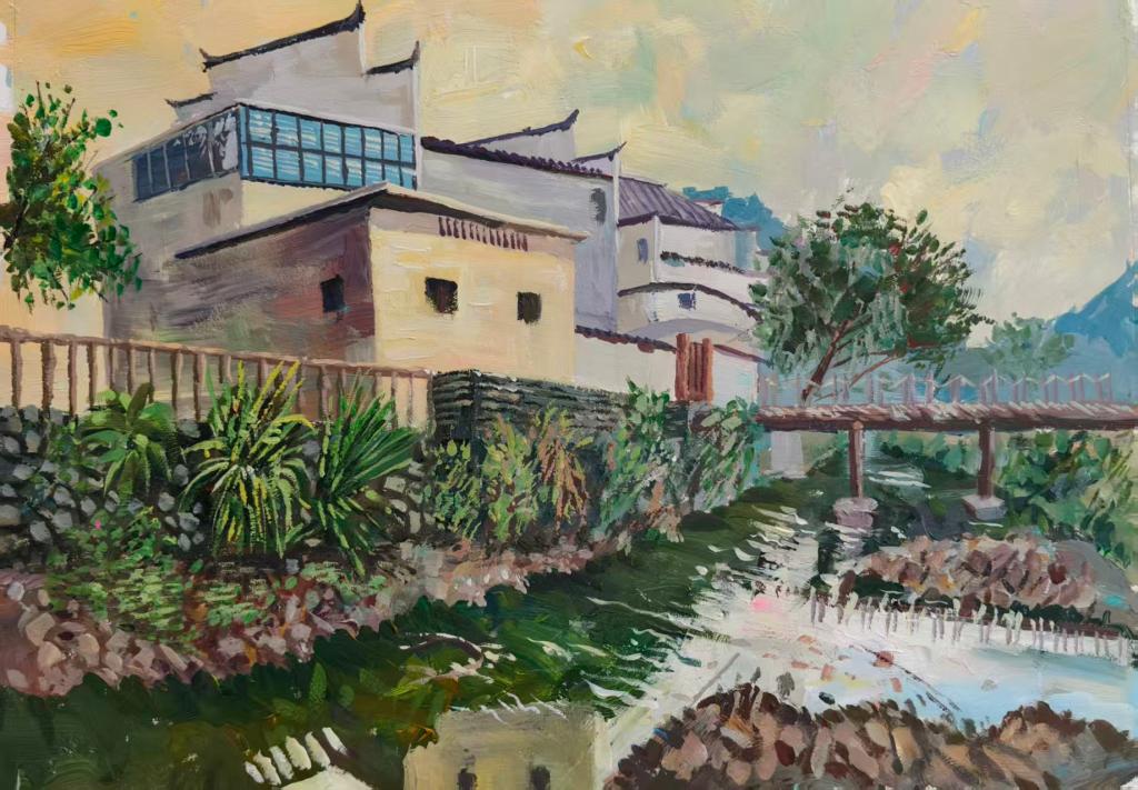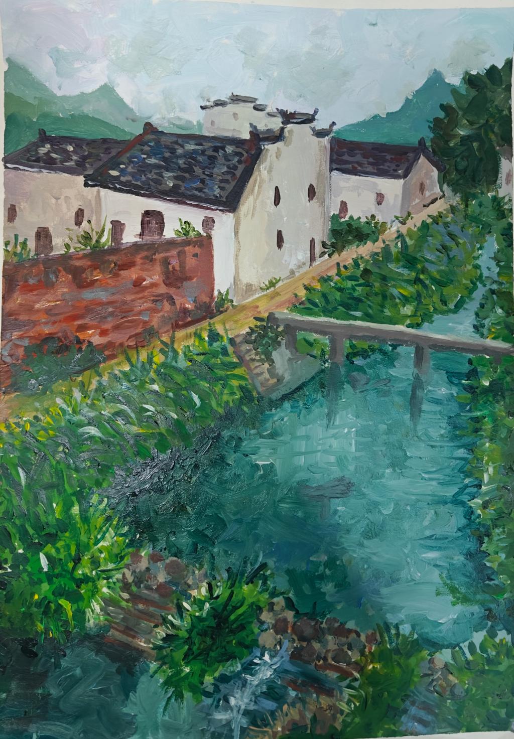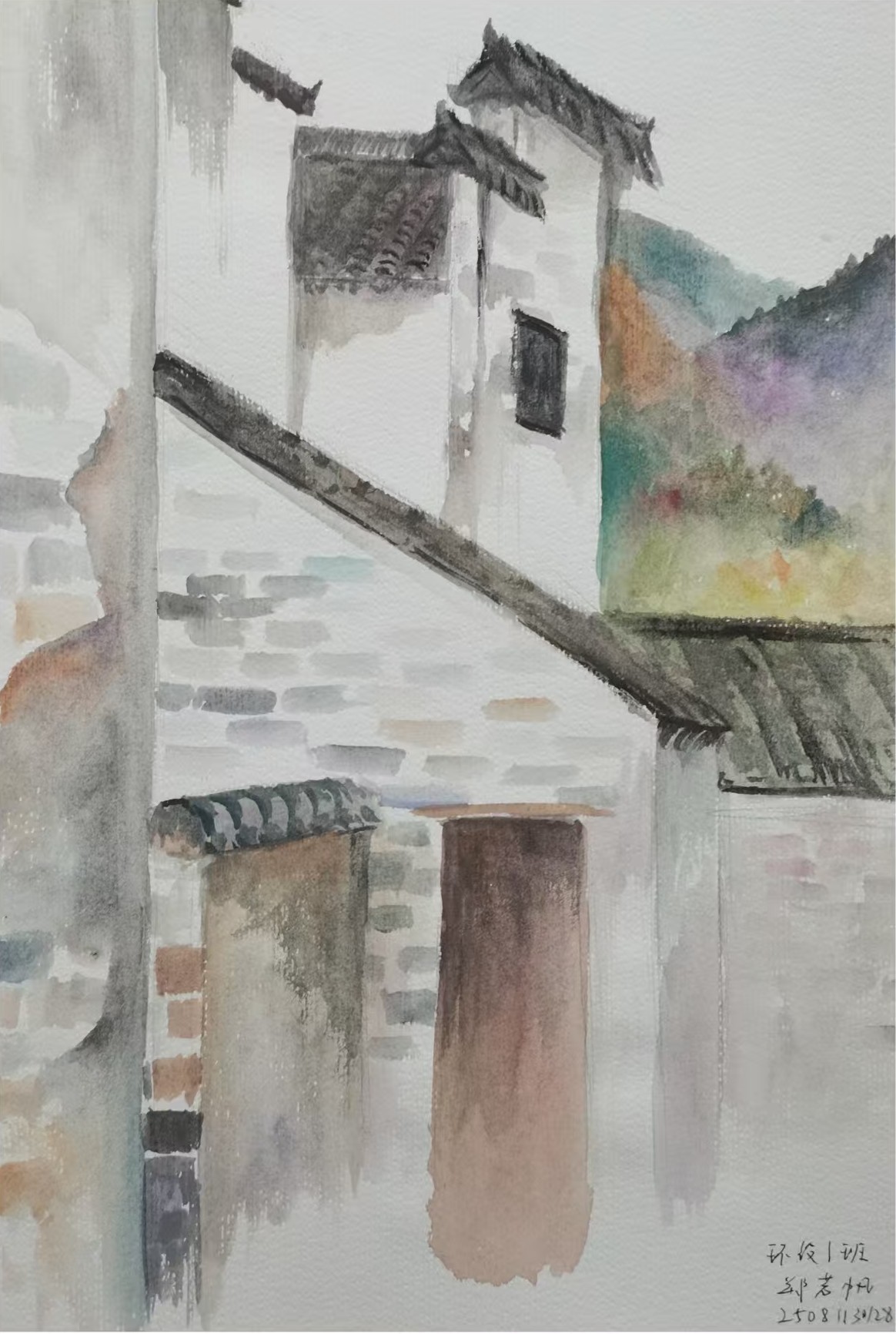 本次线上作品展之色彩篇主要汇集了学生们在婺源创作的色彩佳作。作品以水彩、水粉等为媒介,通过明快的色调与丰富的层次,再现徽派建筑的韵味、田园风光的诗意,展现同学们对自然色彩的敏锐感知与艺术表达。