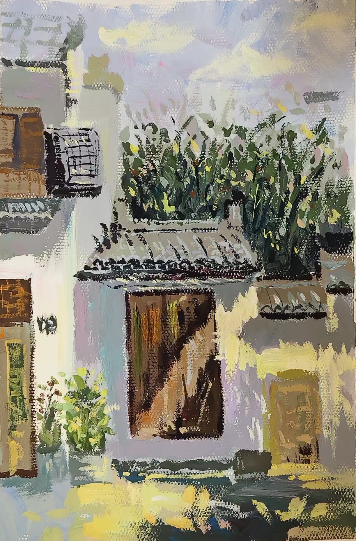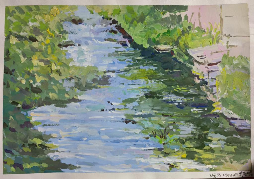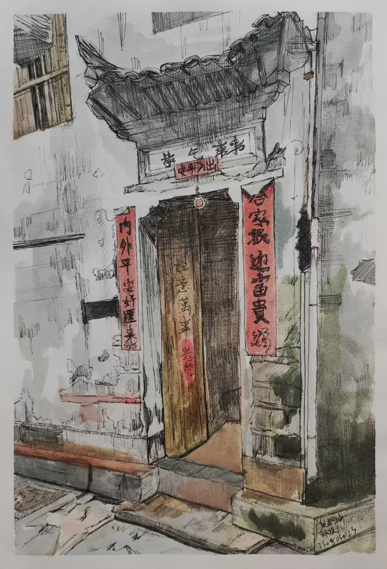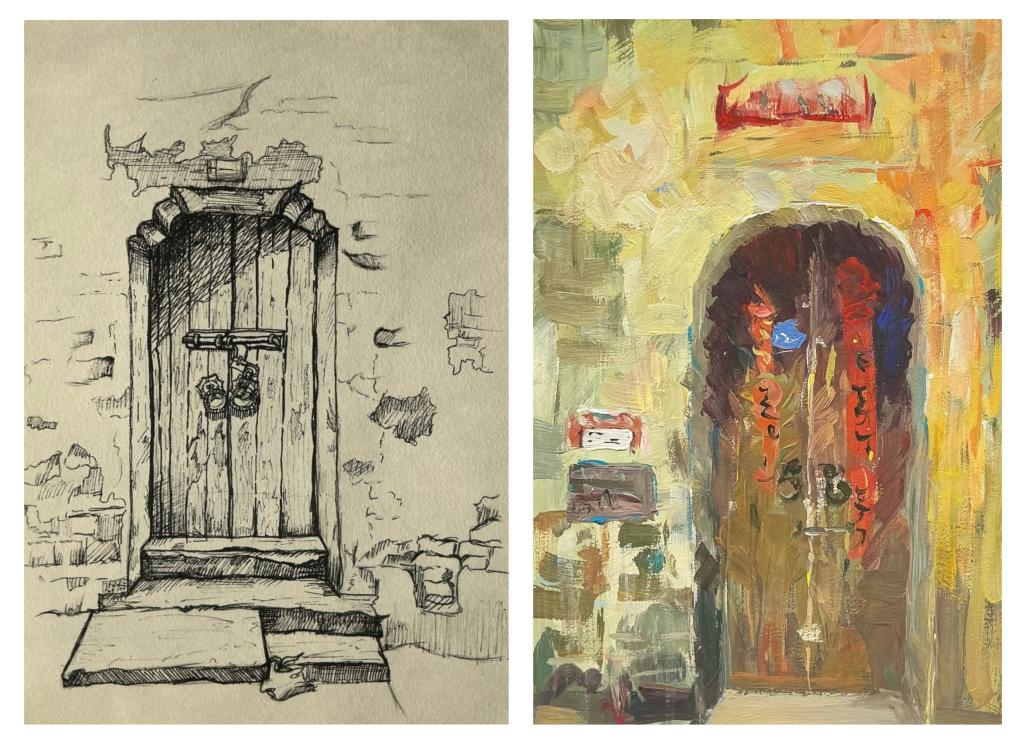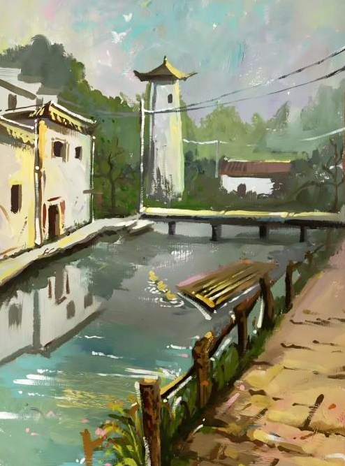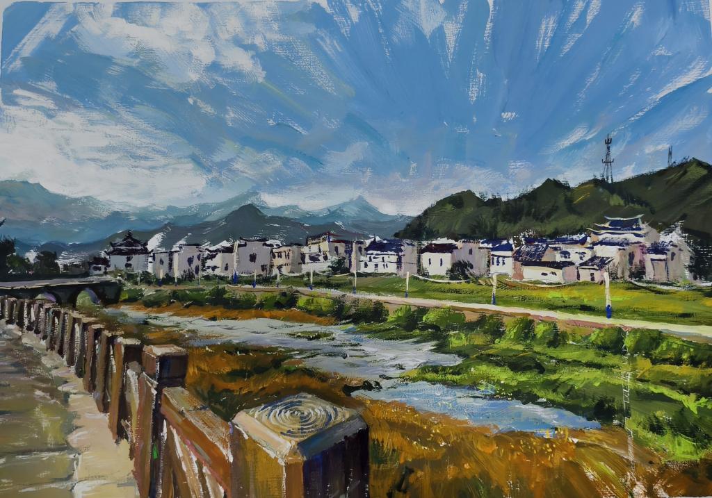 本次线上作品展之色彩篇主要汇集了学生们在婺源创作的色彩佳作。作品以水彩、水粉等为媒介,通过明快的色调与丰富的层次,再现徽派建筑的韵味、田园风光的诗意,展现同学们对自然色彩的敏锐感知与艺术表达。