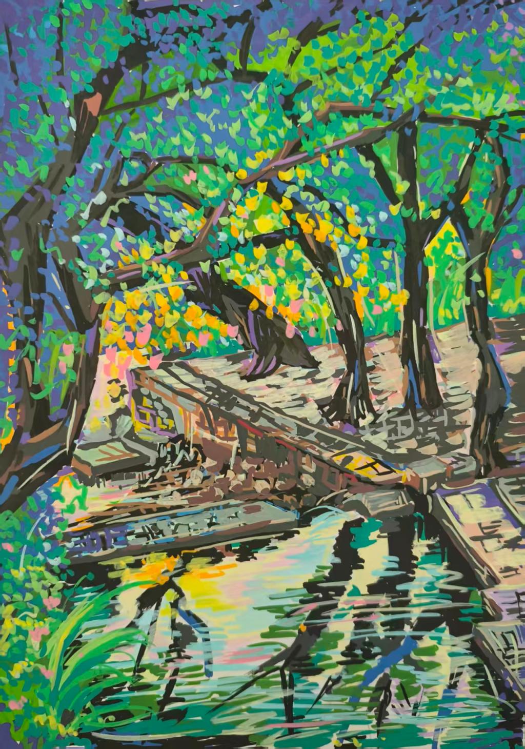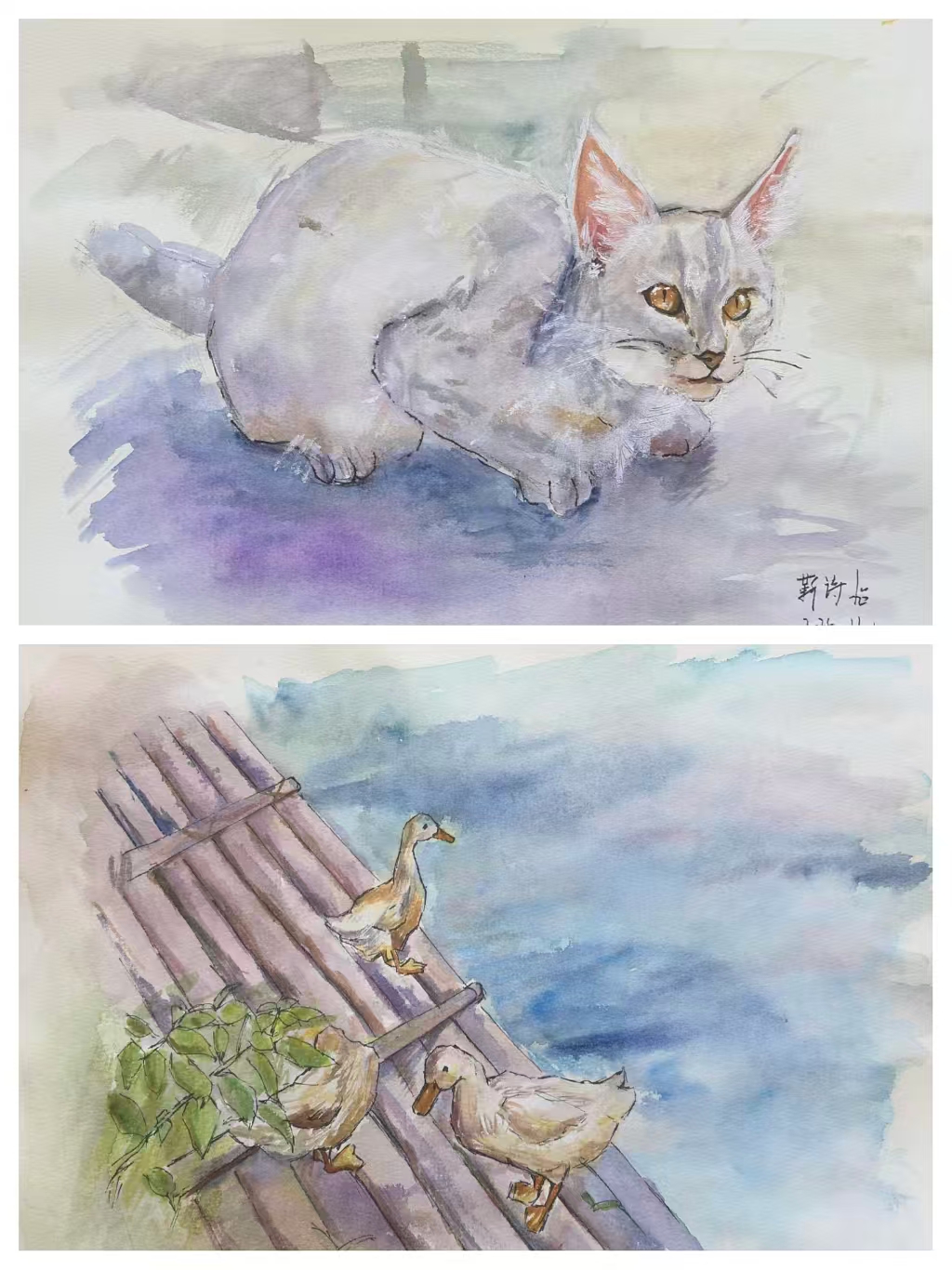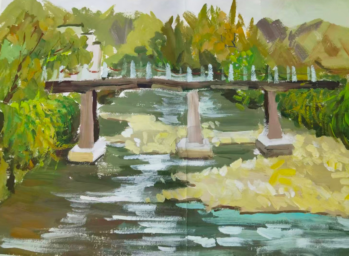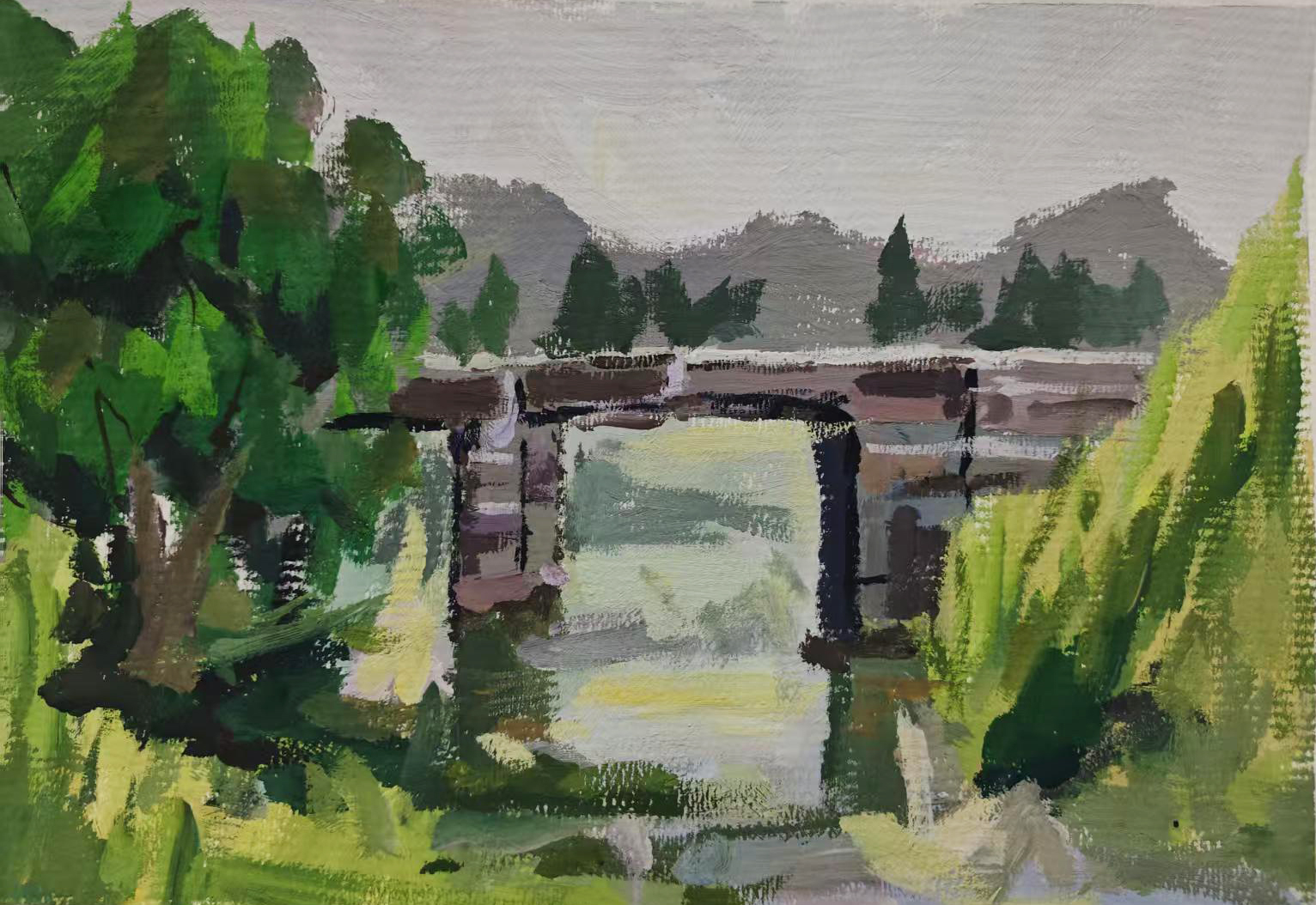 本次线上作品展之色彩篇主要汇集了学生们在婺源创作的色彩佳作。作品以水彩、水粉等为媒介,通过明快的色调与丰富的层次,再现徽派建筑的韵味、田园风光的诗意,展现同学们对自然色彩的敏锐感知与艺术表达。