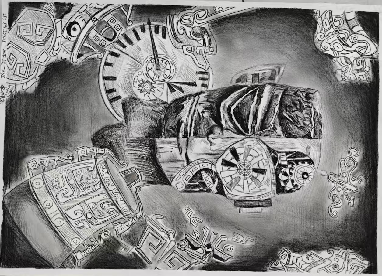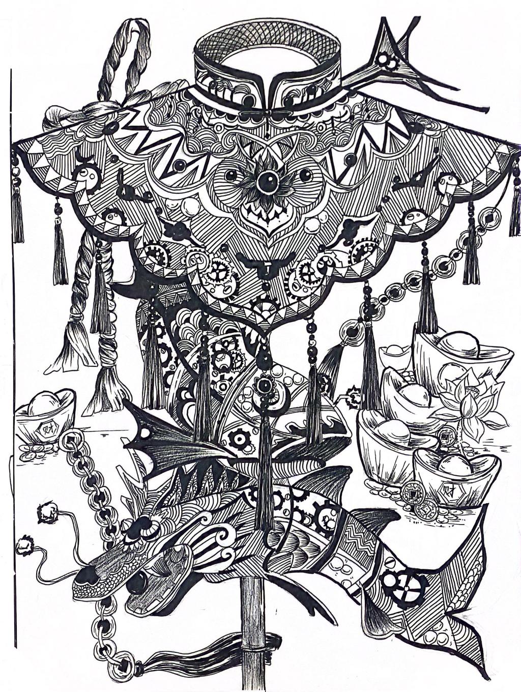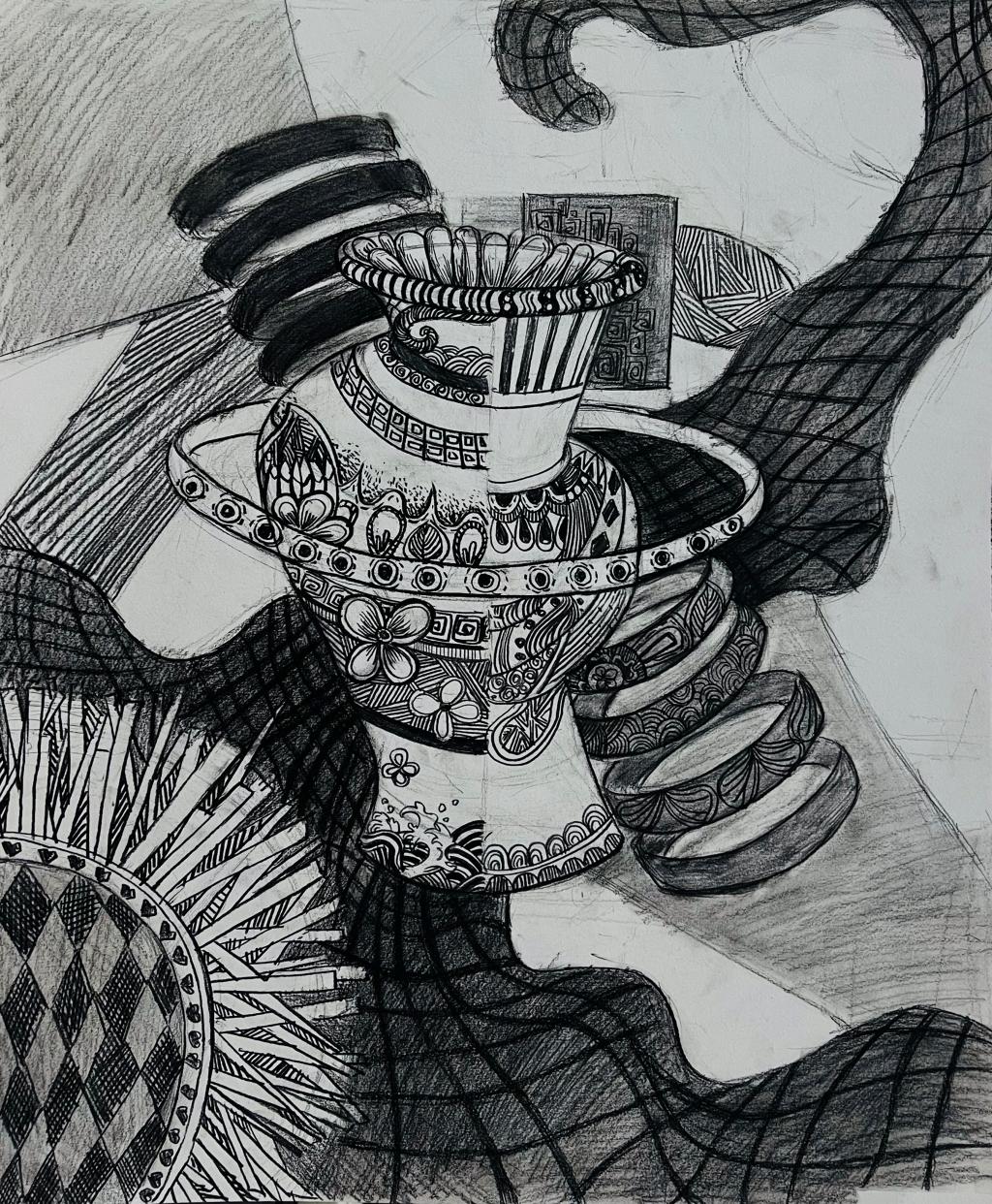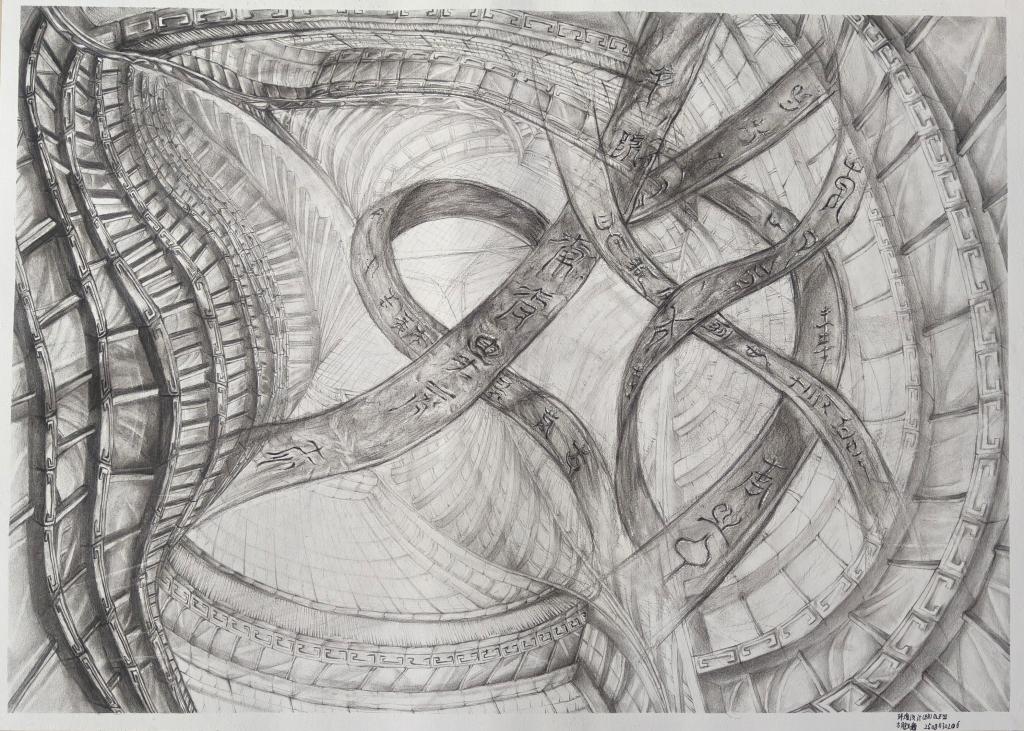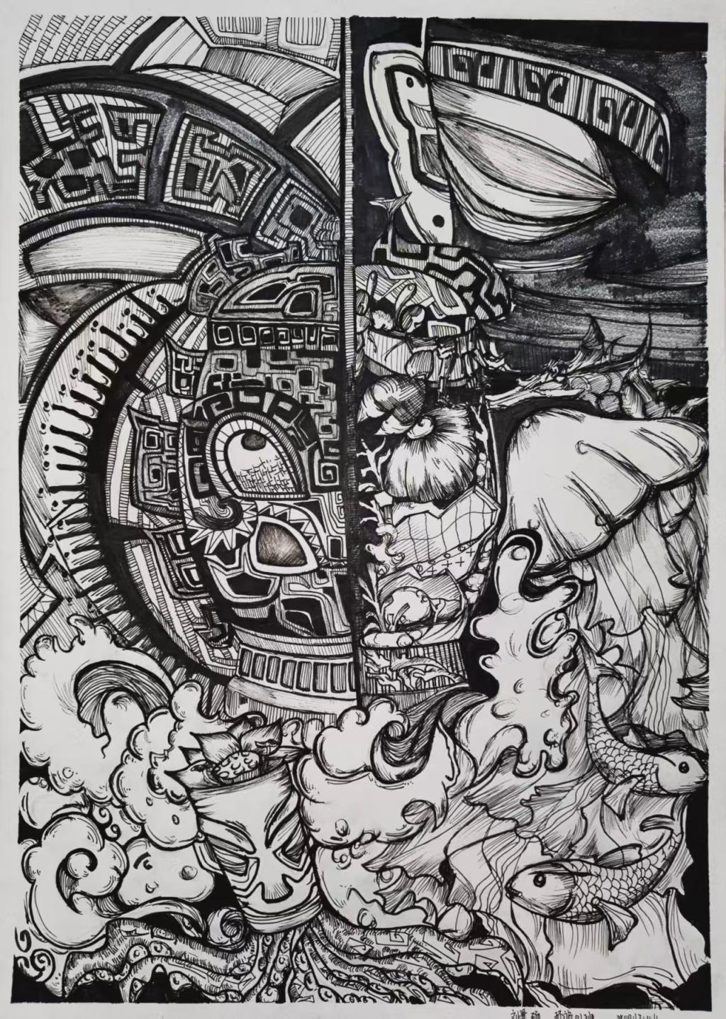 本次展出的作品,有的聚焦传统审美纹样,从传统绘画中提取设计元素,赋予素描作品别样的装饰美感;有的大胆突破写实边界,通过夸张、变形与重组的手法,将日常物件转化为充满想象力的设计雏形;还有的大胆尝试抽象表达,用极简的笔触勾勒出充满韵律感的画面。一笔一画皆是思考,一纸一墨尽是创意,每一幅作品都是同学们观察能力、思考能力与动手能力的结晶,这些作品不仅是技法的凝练,更是同学们设计思维的萌芽。