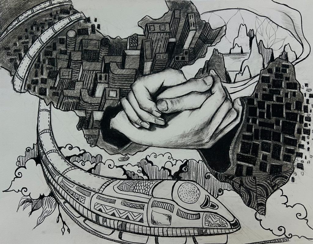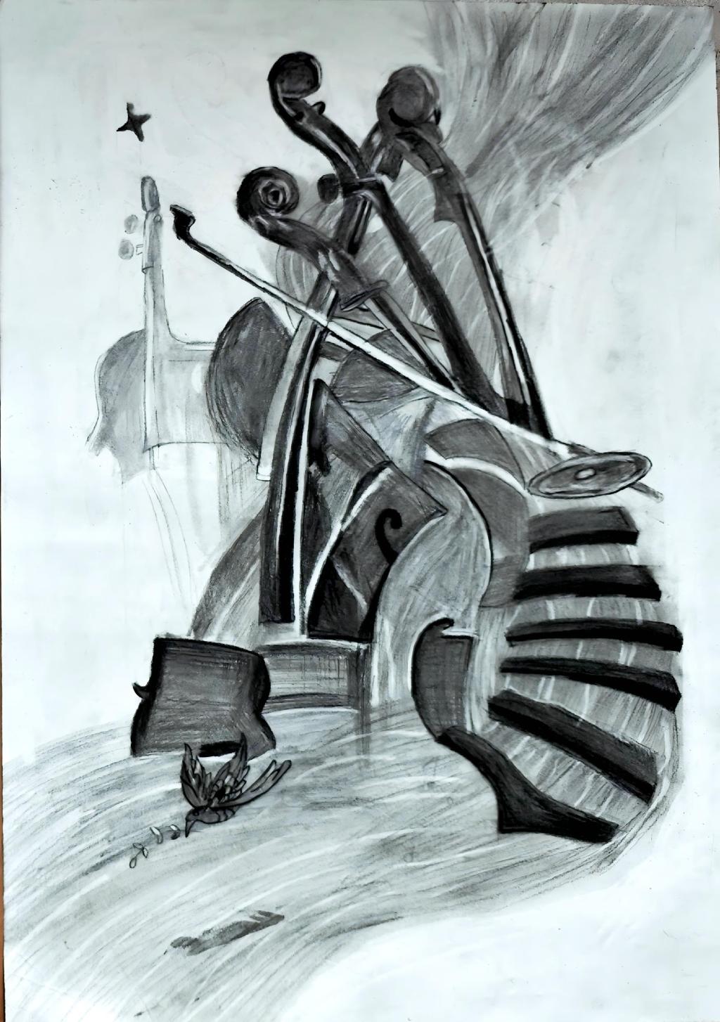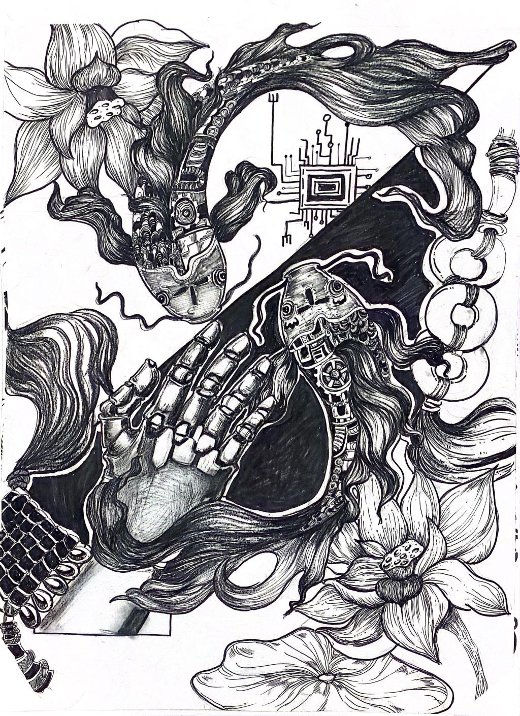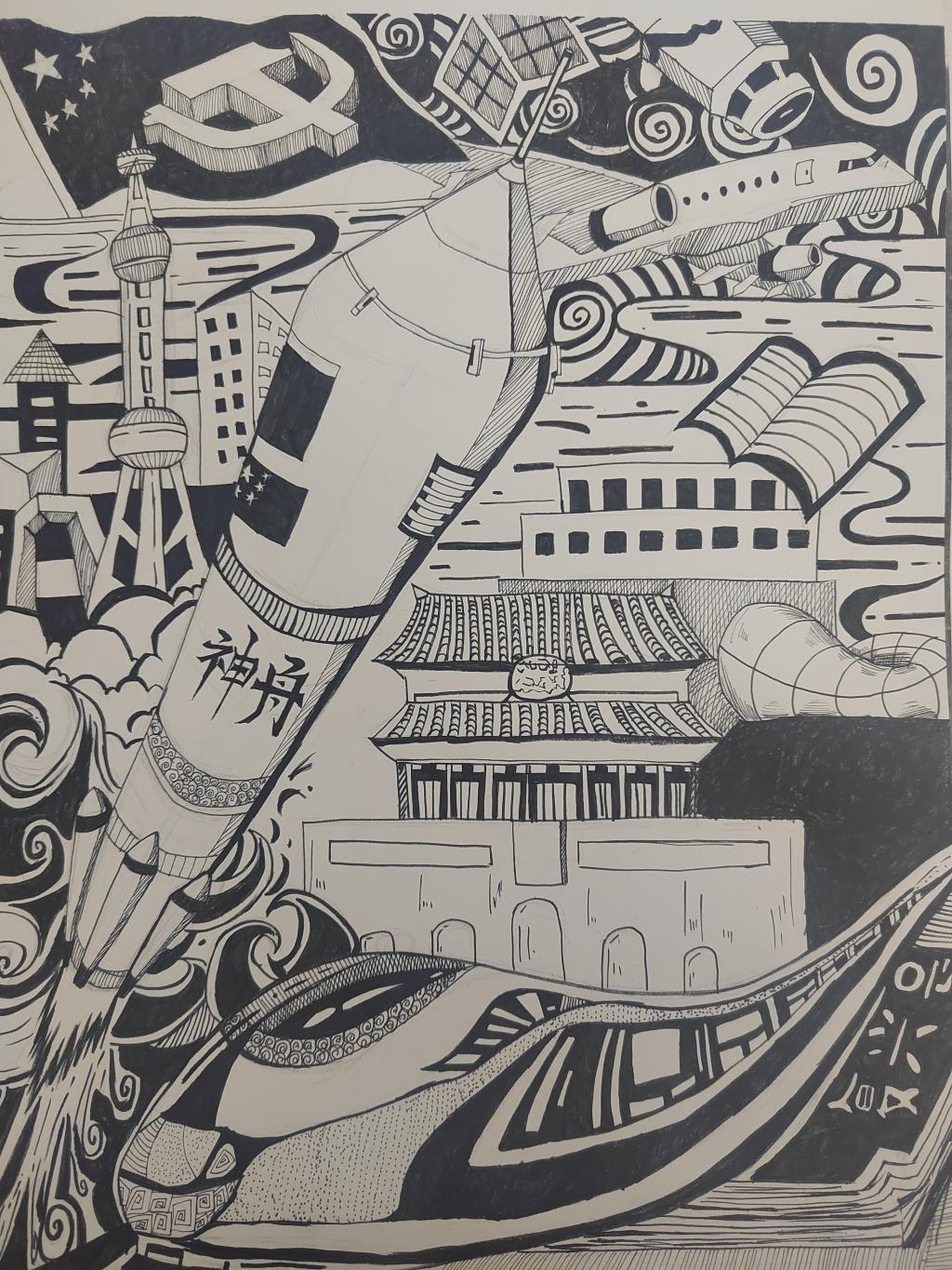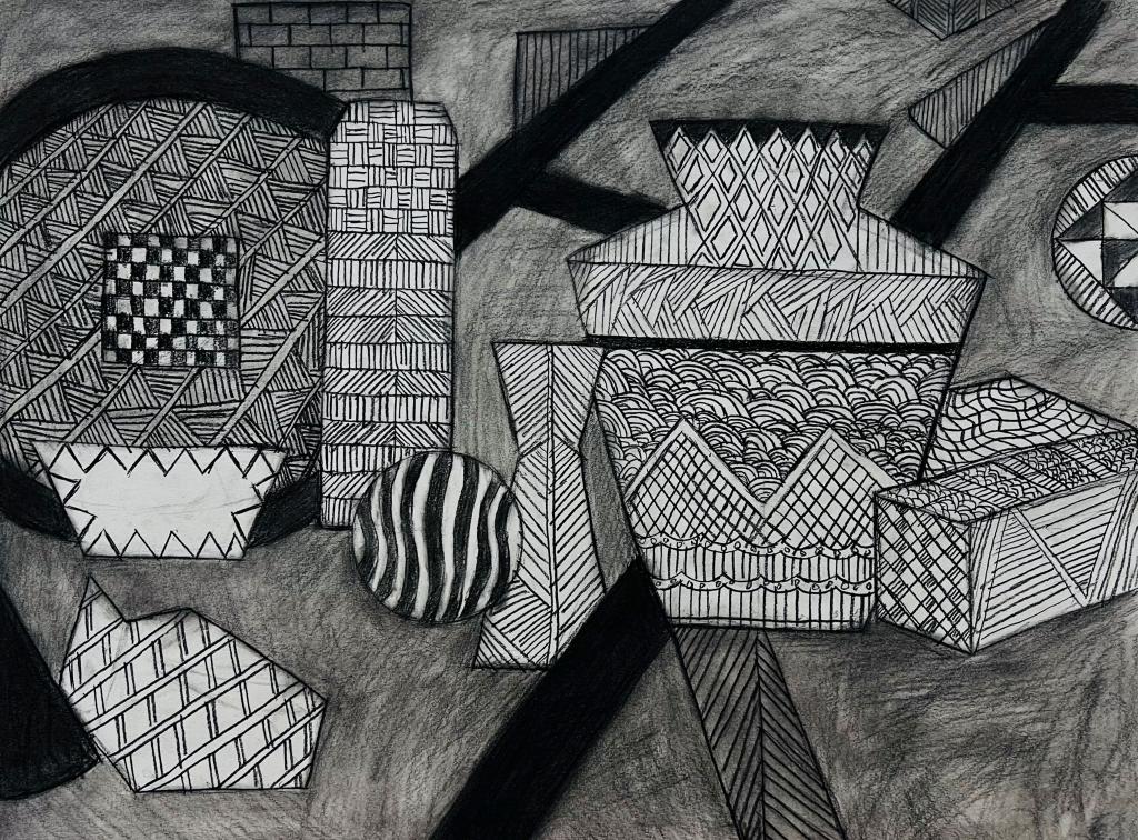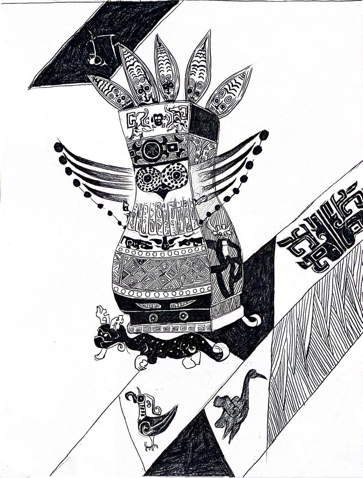 本次展出的作品,有的聚焦传统审美纹样,从传统绘画中提取设计元素,赋予素描作品别样的装饰美感;有的大胆突破写实边界,通过夸张、变形与重组的手法,将日常物件转化为充满想象力的设计雏形;还有的大胆尝试抽象表达,用极简的笔触勾勒出充满韵律感的画面。一笔一画皆是思考,一纸一墨尽是创意,每一幅作品都是同学们观察能力、思考能力与动手能力的结晶,这些作品不仅是技法的凝练,更是同学们设计思维的萌芽。