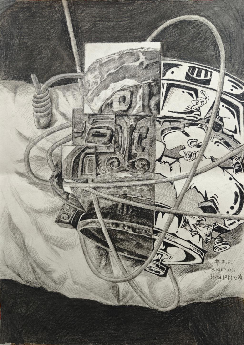 (图/文 卞明影)《设计素描》作为艺术设计学院大一学生的学科基础必修课程,实践性较强,是让学生在掌握设计素描基本理论和方法的基础上,摒弃传统素描对光影、质感的单一描摹,转而以结构分析、形态解构、创意重构核心,引导同学们以理性视角观察形态,提升学生的基础造型能力、综合审美能力和创意思维能力,为后续专业课程的学习奠定良好的基础。
