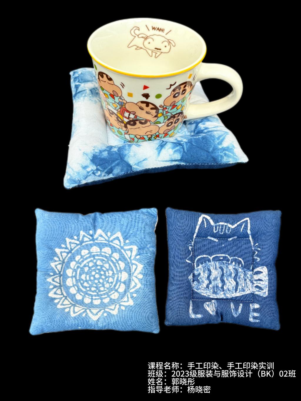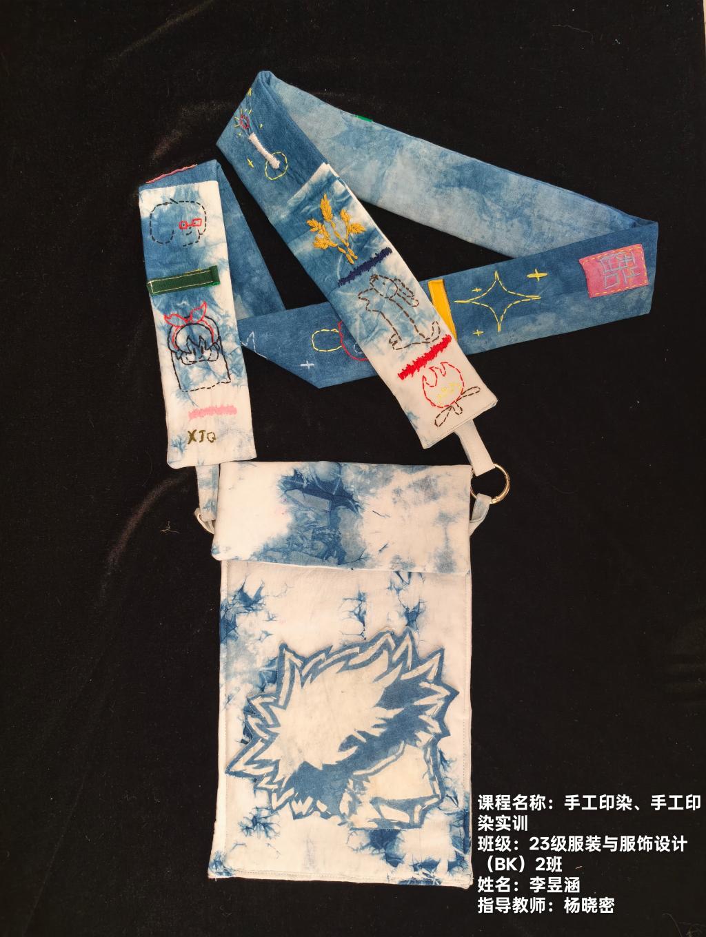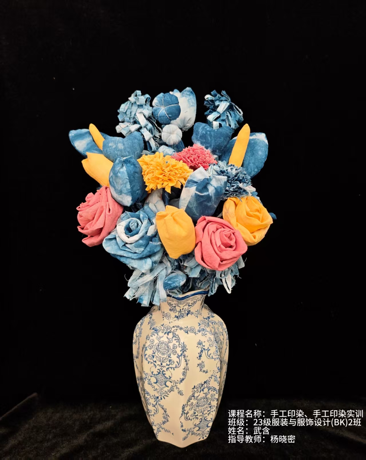 本次实训聚焦传统植物染非遗技艺,全程采用天然染色原料,以蓝靛泥、苏木、栀子为主要染料,萃取自然色彩进行创作,摒弃化学染料,还原手工印染最质朴的艺术质感。课堂上,同学们系统学习扎染、蜡染、型染、蓝晒等多种经典技法,从染料调配、布料预处理,到纹样设计、染色固色,一步步实操演练,在反复尝试中掌握工艺要点,感受传统手工艺的独特魅力。 区别于单一的服饰印染创作,本次实训紧扣“实用”核心,引导学生将传统技艺融入日常生活。
