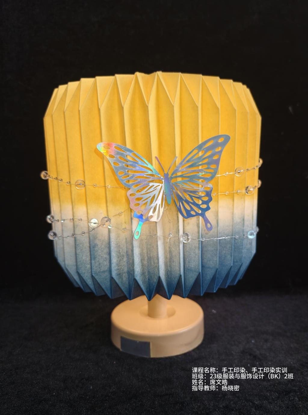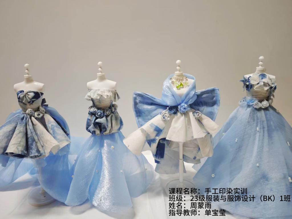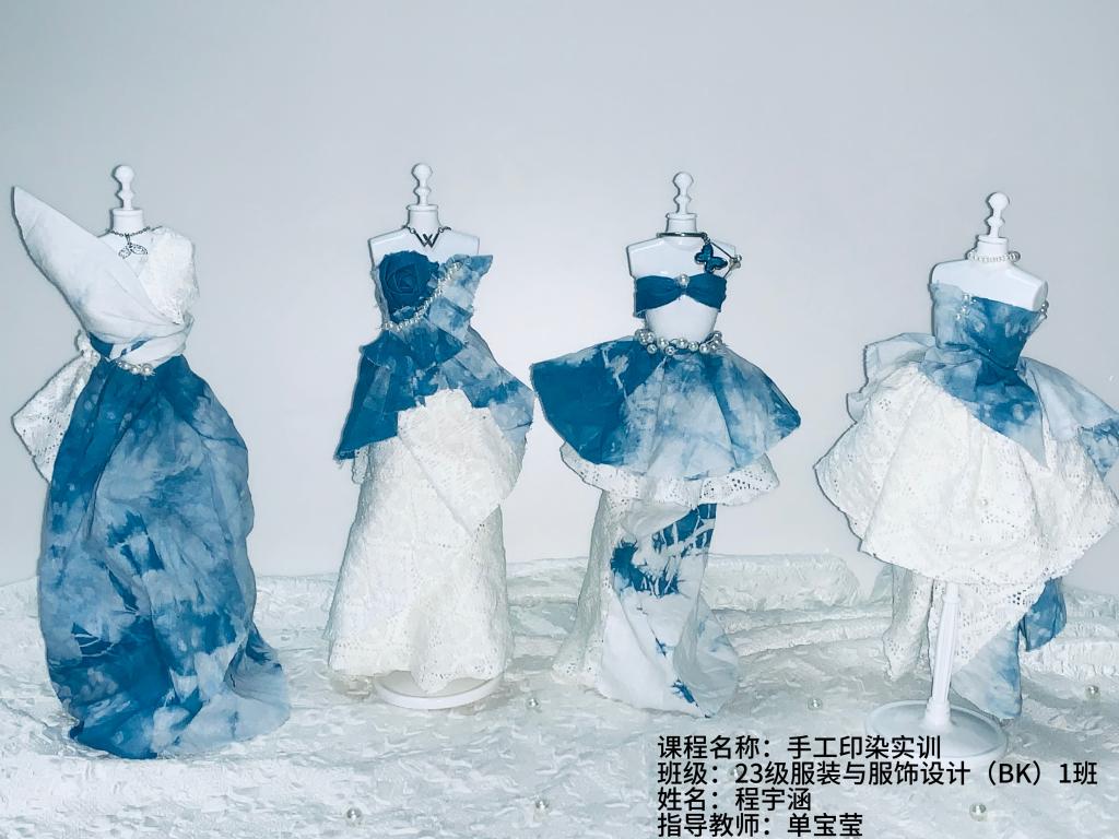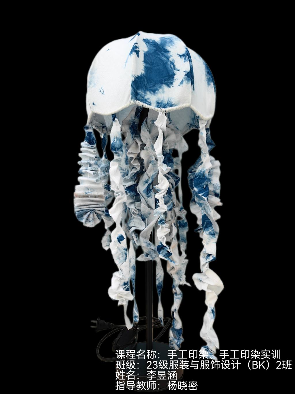 同学们发挥专业设计优势,突破创作边界,把印染成果运用到各类生活用品的设计制作中,精心打造出印染台灯、原创饰品、布艺包包、特色服装、装饰挂画等多元化作品。每一件作品都将自然印染美学与日常实用功能完美结合,让非遗技艺走出课堂,真正融入生活、装点生活。 此次实训不仅夯实了学生专业实操功底,更让大家深入体会传统手工艺的文化底蕴,实现了专业教学、美育培养与非遗传承的有机统一,也为后续专业设计创作积累了宝贵的实践经验。