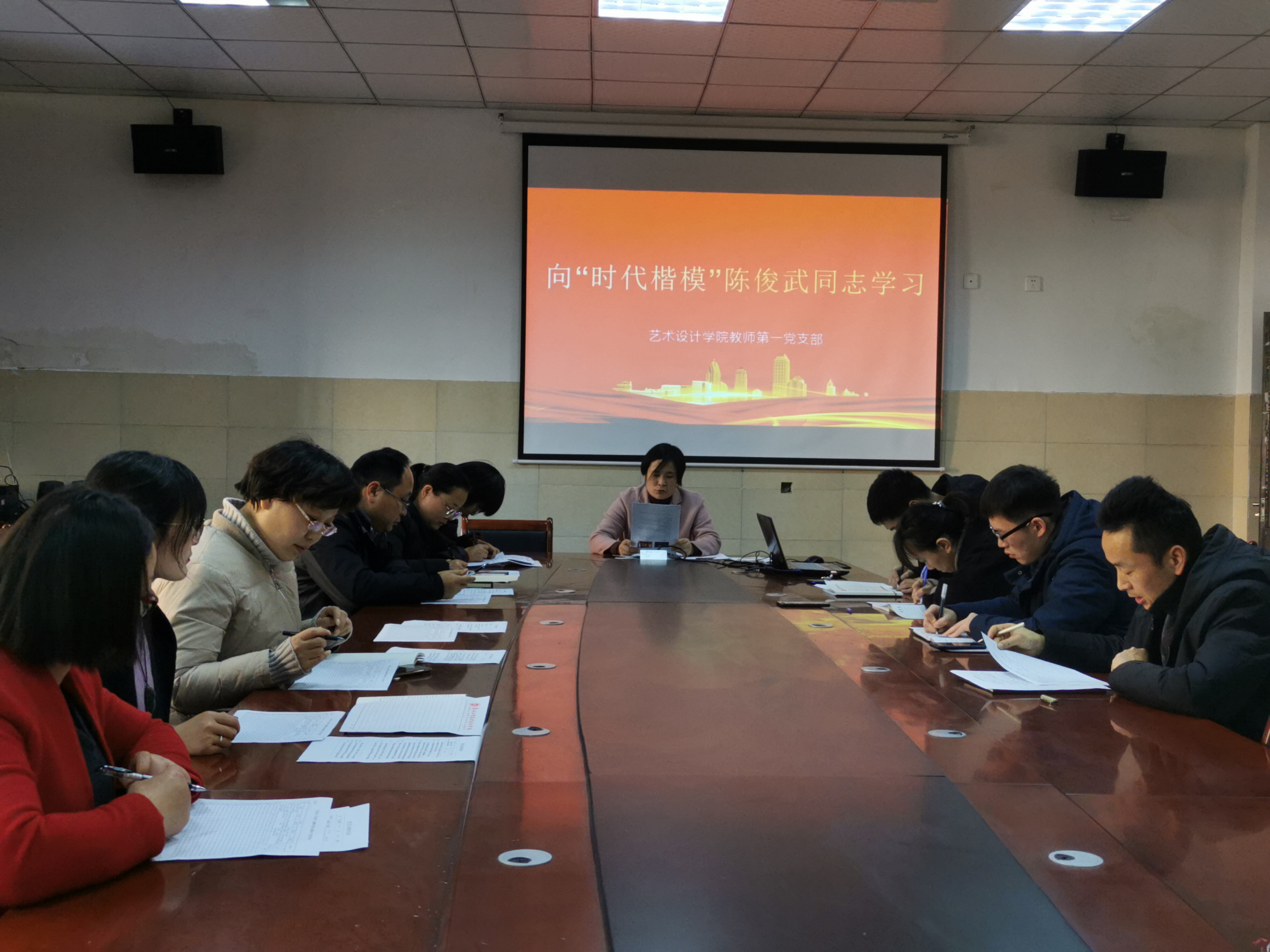 (图/文 韩梦婷)2019年12月12日中午12点,艺术设计学院教师第一党支部在艺212会议室组织召开向“时代楷模”陈俊武同志学习的会议,会议由支部书记张凡同志主持召开,支部全体成员参加。