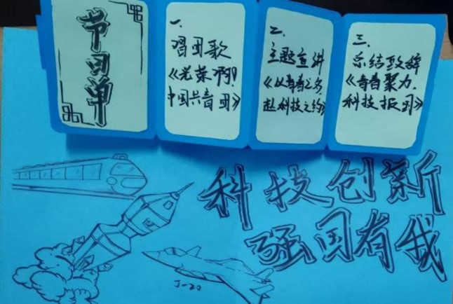 活动期间,各班团支书以“青春赋能科创,助力强国建设”为核心导向,组织同学们绘制主题鲜明、富有创意的海报与黑板报,营造浓厚科技氛围。并鼓励动手制作科技模型、设计立体创意节目单,展现青年实践能力与想象力。同时,各个团支书利用PPT,深入宣讲科技创新精神与国家前沿成就,引领青年树立科技报国志向。推动青春智慧转化为科技创新实践动能。